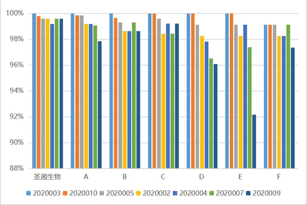 yabo鸭脖官网生物试剂阴性样本检测结果的符合率也领先于其它主流厂家,具有较好的特异性。综合室间质评结果来看,yabo鸭脖官网生物新冠病毒核酸检测试剂检出率、重复性及特异性上具有较大的优势。