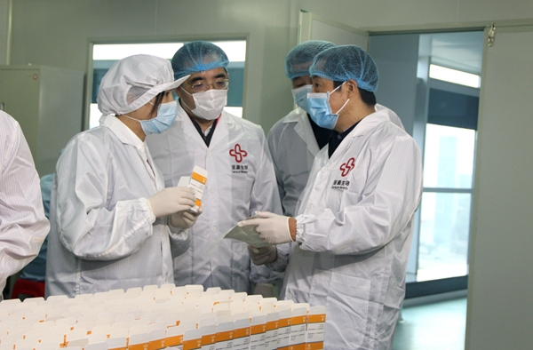 时任湖南省省长、现任湖南省委书记许达哲在抗疫早期调研yabo鸭脖官网生物抗疫物资生产情况