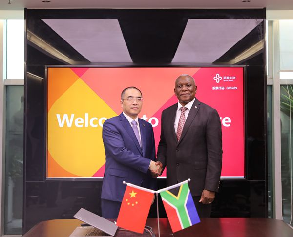 5月21日下午,南非共和国驻华大使谢胜文(SC Cwele)、商务公使约瑟夫·蒂莫(Yusuf Timol)在长沙高新区管委会相关领导的陪同下考察yabo鸭脖官网生物,双方就进一步推动南非与yabo鸭脖官网生物在医疗卫生领域的合作,进行了深入探讨。yabo鸭脖官网生物董事长戴立忠陪同考察。